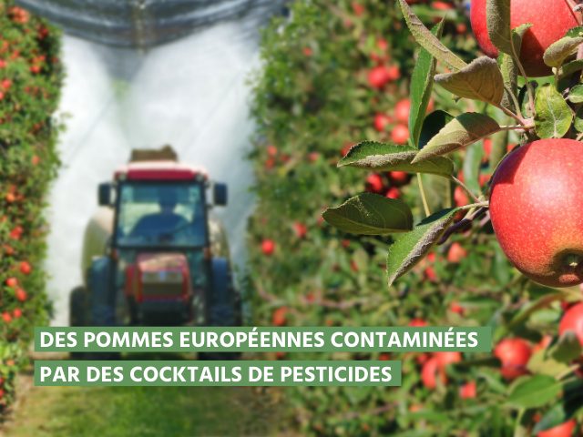 L’analyse de résidus en pesticides de 59 pommes en Europe met en évidence une contamination quasi systématique avec un cocktail de pesticides. Bien que la loi le prévoie, l’UE n’évalue toujours pas la toxicité liée à l’exposition des consommateurs à des mélanges de pesticides. L’enquête révèle aussi que si ces pommes avaient été destinées à des aliments transformés pour bébés, elles n’auraient pas été autorisées à la vente.