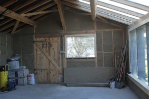 Inscription par email souhaitée – test de la terre – dosage du mélange terre + sable + chénevotte – coffrage sur ossature bois – ossature bois – charpente bois